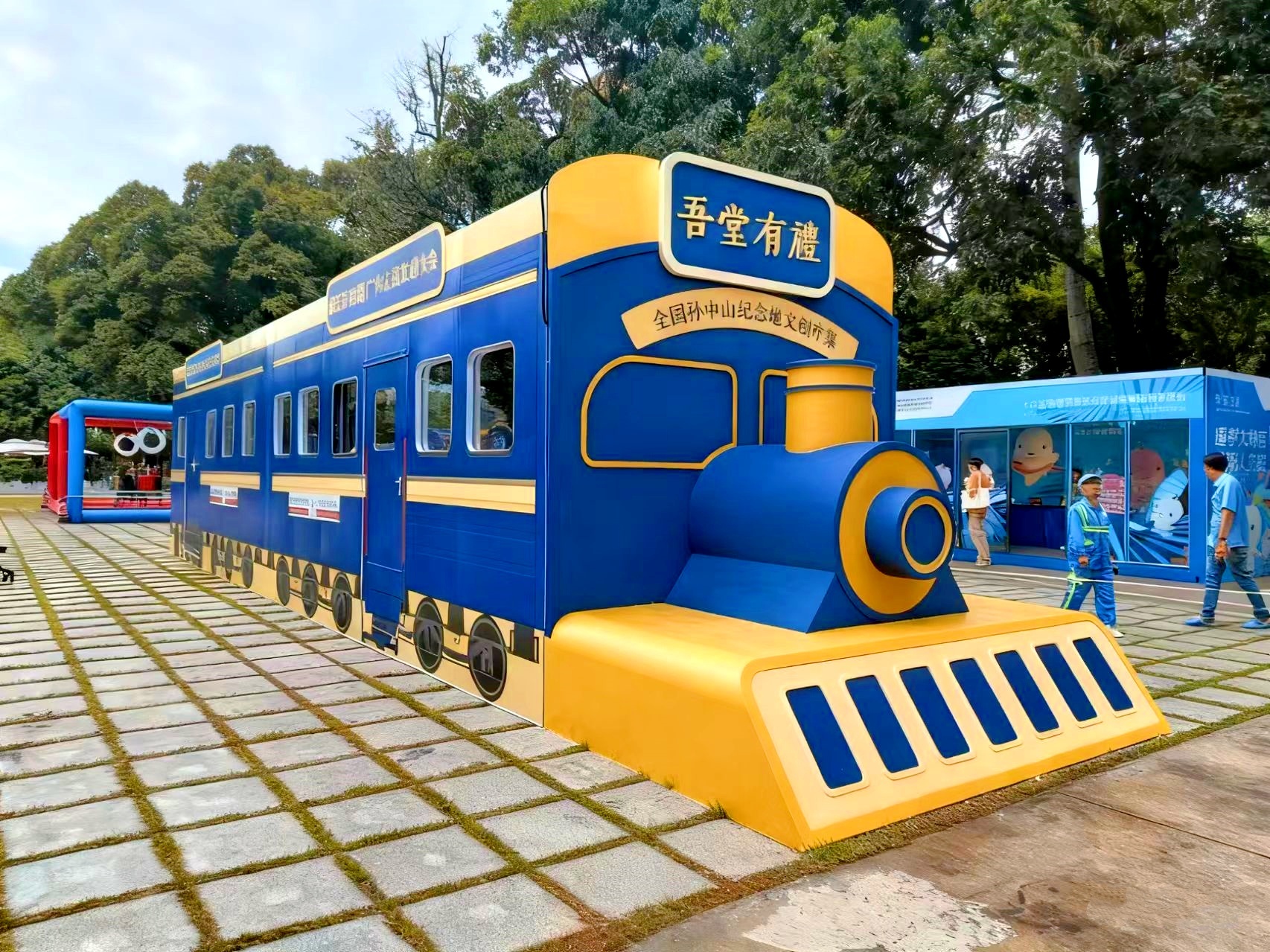 市集的核心亮点是精心设计的“吾堂有礼”时光列车。列车“停靠”在中山纪念堂西广场,车厢化身为展示窗口,汇聚了来自北京、上海、南京、武汉、广州、中山等全国12家孙中山纪念地的精选文创产品。
