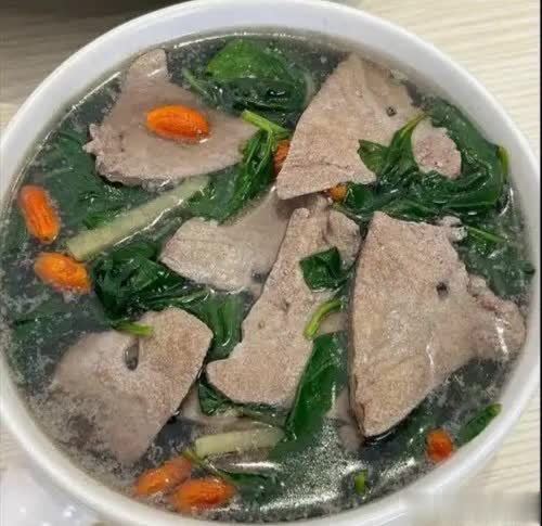 菠菜猪肝汤食材:菠菜、猪肝、姜片、料酒、盐、香油