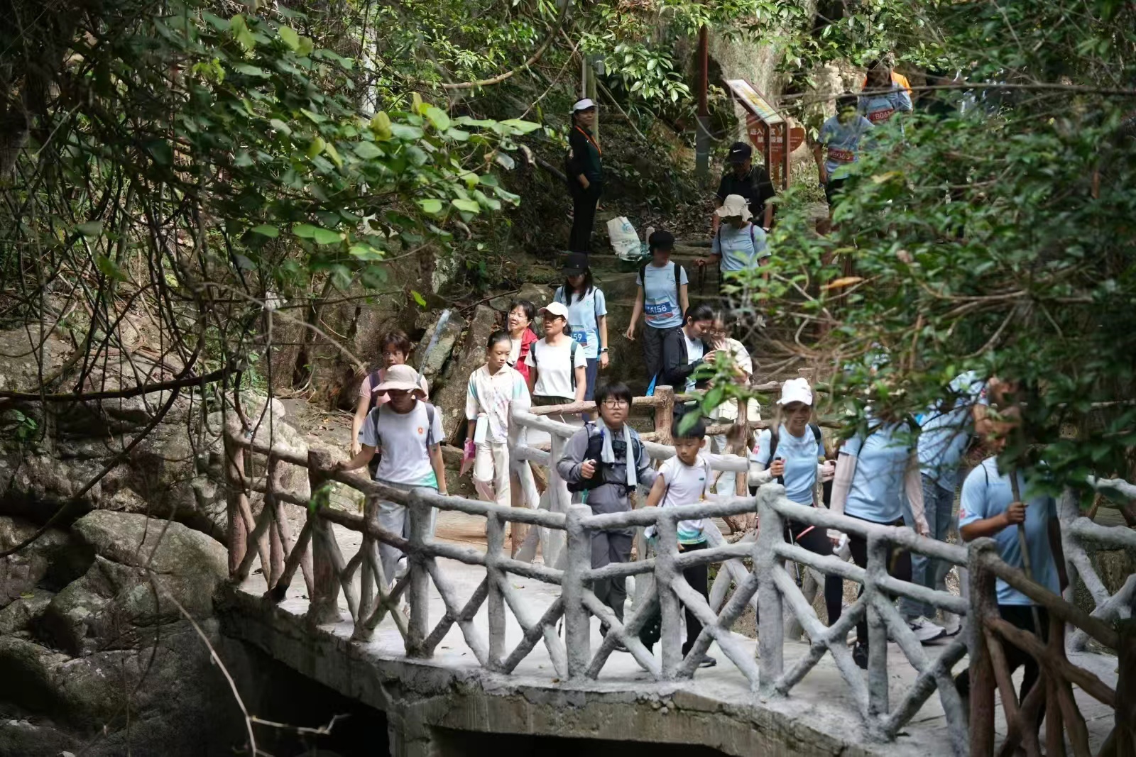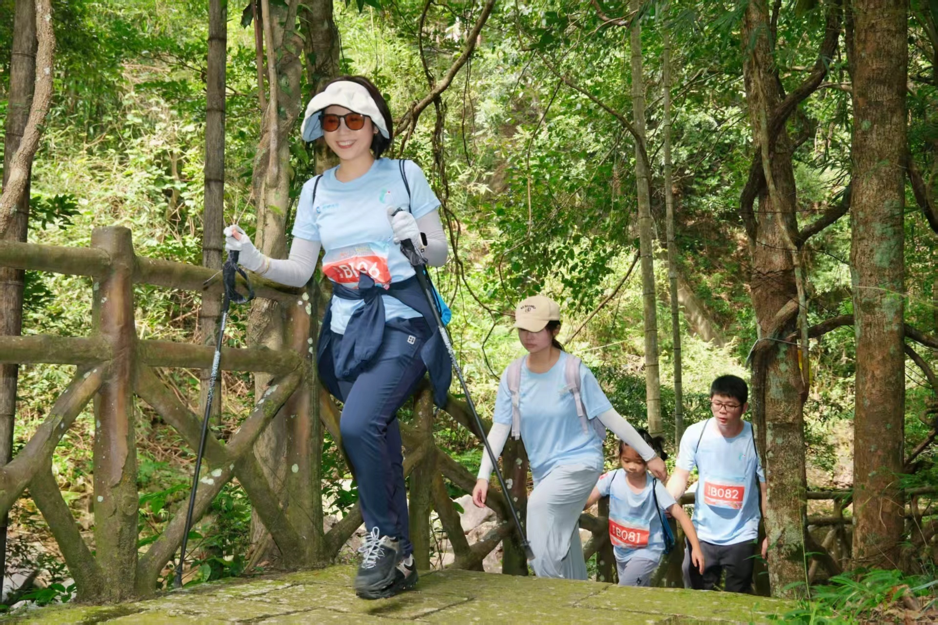 沿途绿树成荫、竹海连绵、溪流潺潺、奇峰耸立,参与者在青山绿水间穿行,呼吸清新空气,湖光山色尽收眼底。大家不时驻足留影合照,欢声笑语回荡在山谷之间。